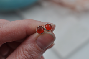 Wooden ring stands on a marble surface with silver hammered textured rings displayed.