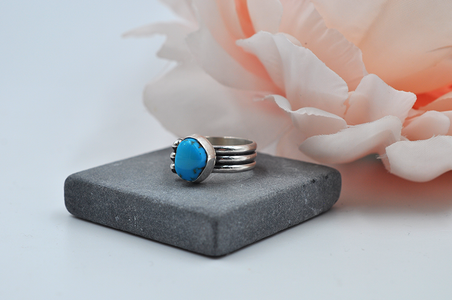 Turquoise when worn, acts as a protection stone and has strong healing properties. Wear it to help rid you of any negative energies both within and around you. This stone is also said to act as a barrier of protection to outside influences and shield you from harm. It is said to help open the heart, throat and third chakras. Take this turquoise ring with you on your journey through life and find balance, peace, happiness and love.
