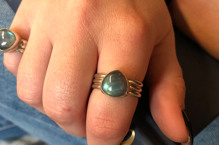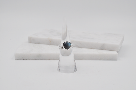 Life is all about balance. This ring was created with balance in mind. Pairing this triple sterling silver band with a three sided rainbow moonstone creates physical balance and known to help restore mental balance as one of its metaphysical benefits.