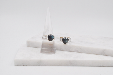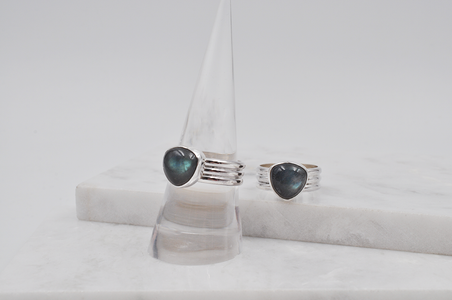 Triangle Labradorite Triple Band Sterling Silver Joia Ring