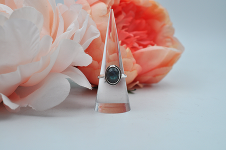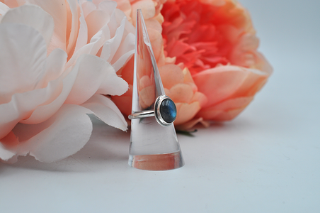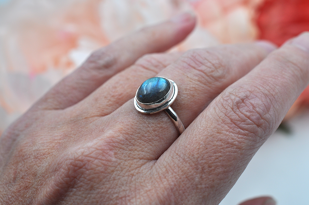 Small, simple and a pop of flashy blues. This labradorite ring can be your new perfect go to every day ring.